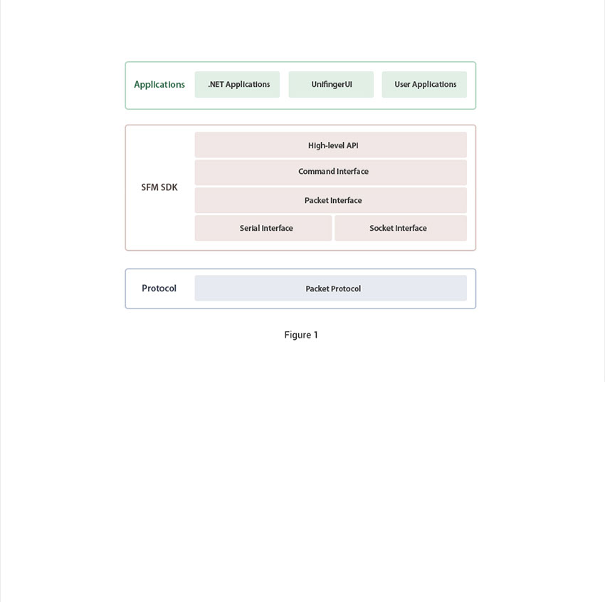As shown in Figure 1, the SDK is composed of several layers and developers could choose whichever layer suited for their applications. Another strong point of the SDK is its extensibility. Many of core APIs provide callback mechanism, with which developers can add customized functions. UniFingerUI is a good example of this feature. Completely rewritten from scratch, UniFingerUI covers all the core functionalities of SFM modules and shows how to use the SDK in real applications. The source codes of it are also provided in the SDK.